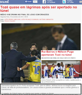 «PSD quer pôr "bomba" na Liga e levar poder para Lisboa» - horas depois; «Liga saúda retirada da proposta do PSD»! Sem os recordes de Casillas nem jogadores roubados ao Benfica o pasquim oficioso do clube da fruta já não sabe o que fazer para evitar que se fale de (não) contratações no foculporto e o "fair-play financeiro" há muito que passou a ser um palavrão que não entra no léxico de onojo, até acabar o verão! Com estes faits divers (foste tu pedro cagança?) o pasquim dos fruteiros já conseguiu meter o querido a ladrar mais do que em toda a época passada! Podem achincalhar a liga, os clubes, os árbitros e demais intervenientes que o Proença come, cala e mete sempre paninhos quentes. «querido, vai haver uma limpeza na casa» parece ser a única coisa que o deixa em brasa.